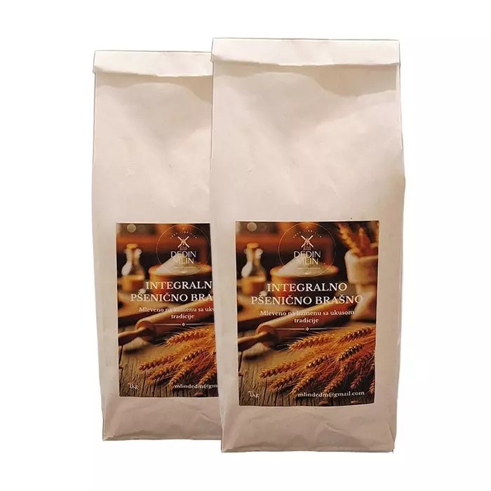 Pšenično integralno brašno Dedin Mlin dobija se mlevenjem celog zrna pšenice na kamenu, čime se zadržava prirodan sadržaj vlakana, minerala i vitamina.